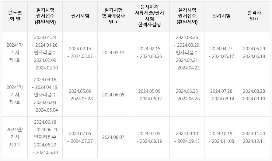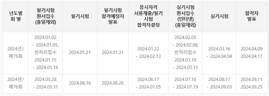 국가 기술자격(정기) 시험일정