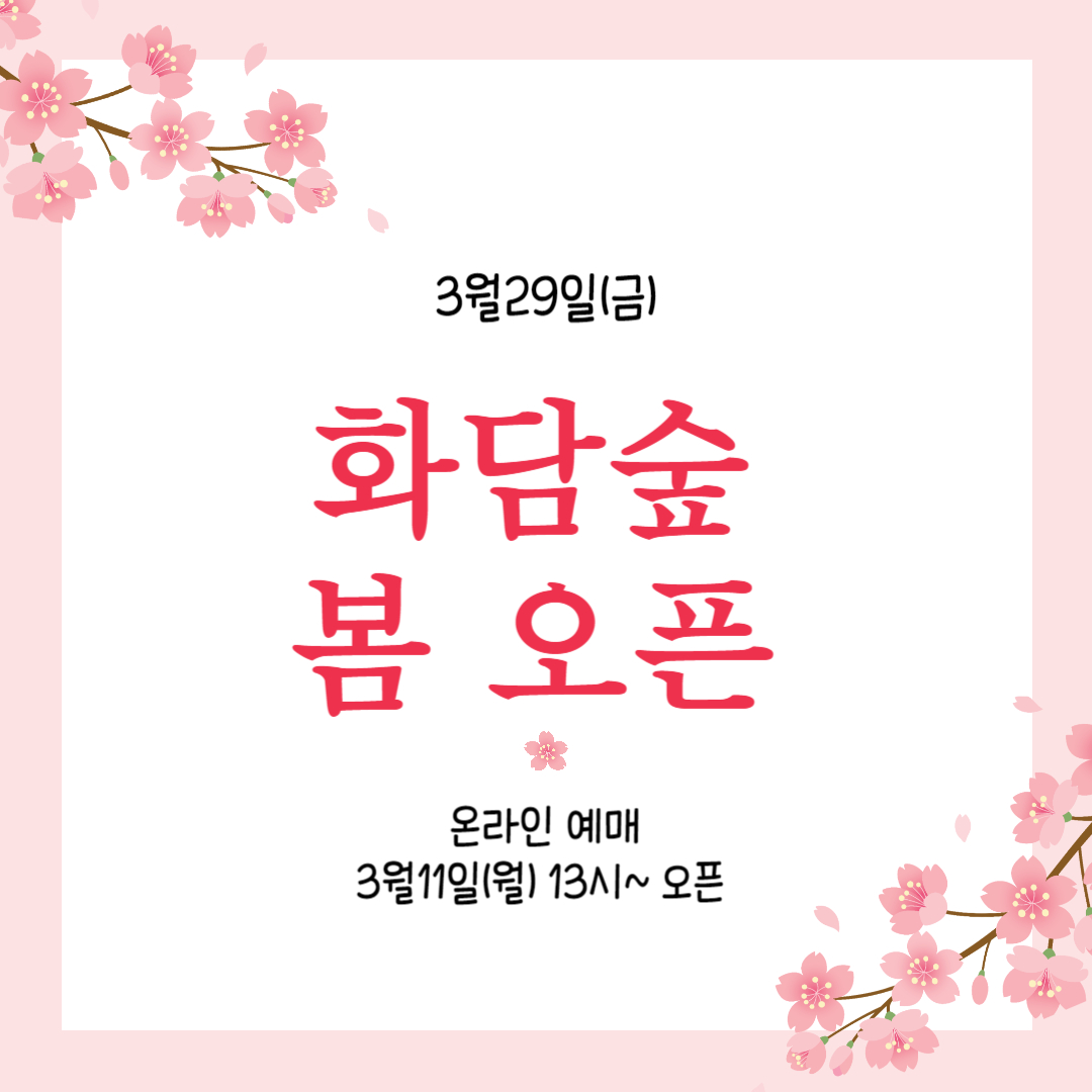 화담숲 봄 시즌 오픈은 3월 29일 입니다. 벚꽃이 만개 한 후 7~10일 지난 후 벚꽃이 떨어지니 일정을 확인하고 화담숲 예약하는것이 좋습니다. 화담숲 봄 예약 오픈은 3월 11일 월요일 오후 1시부터 진행 됩니다.